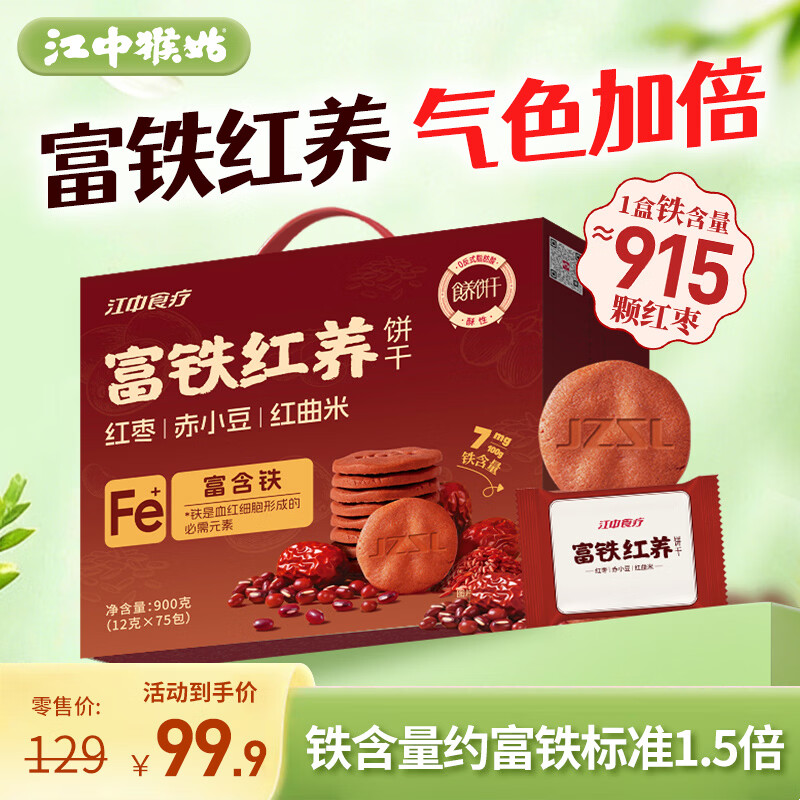 江中猴姑富铁红养酥性饼干900g女性滋补铁红枣早餐软糖休闲零食送礼礼盒