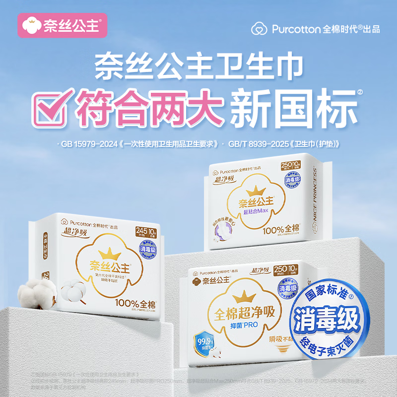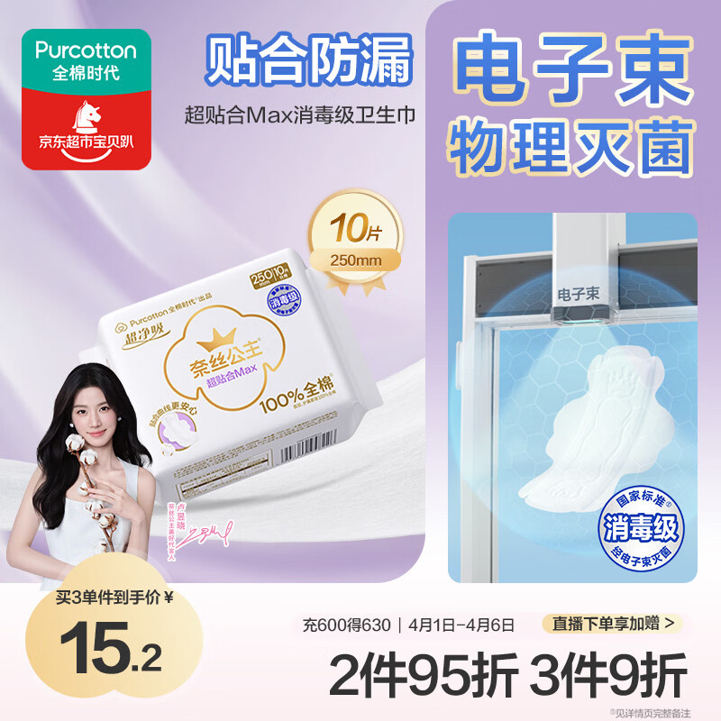 全棉时代【卢昱晓推荐】奈丝公主超净吸超贴合MAX卫生巾250mm,10片/包