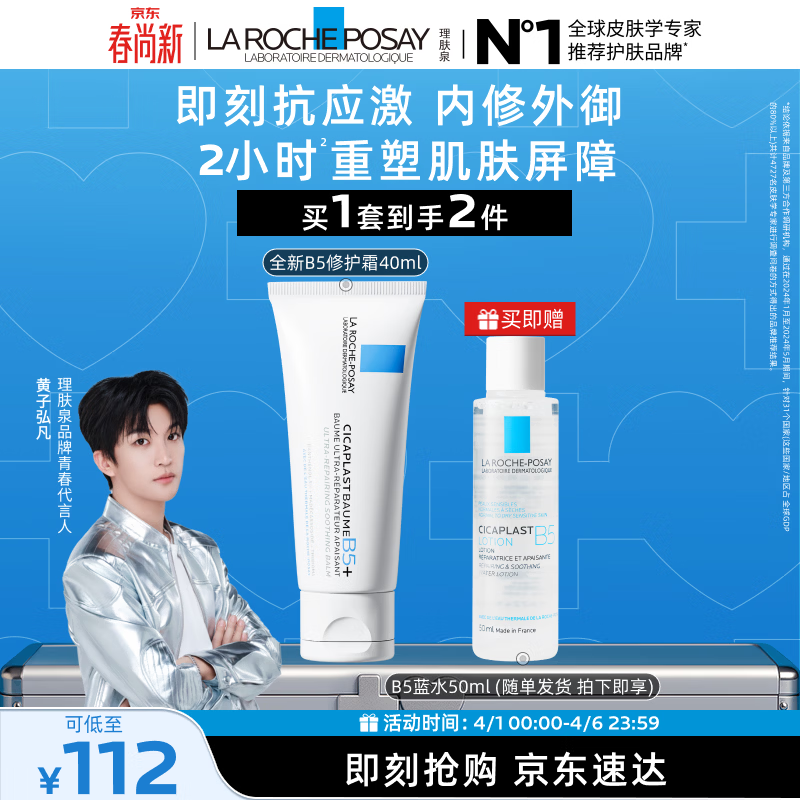理肤泉【黄子弘凡同款】B5霜40ml+B5水50ml套装修护保湿面霜生日礼物