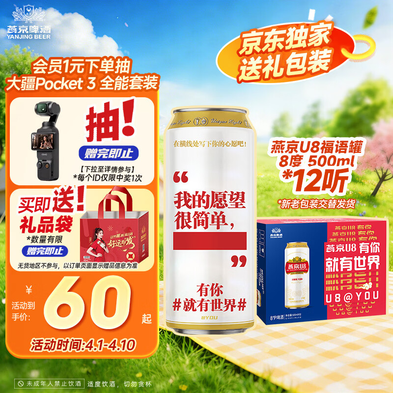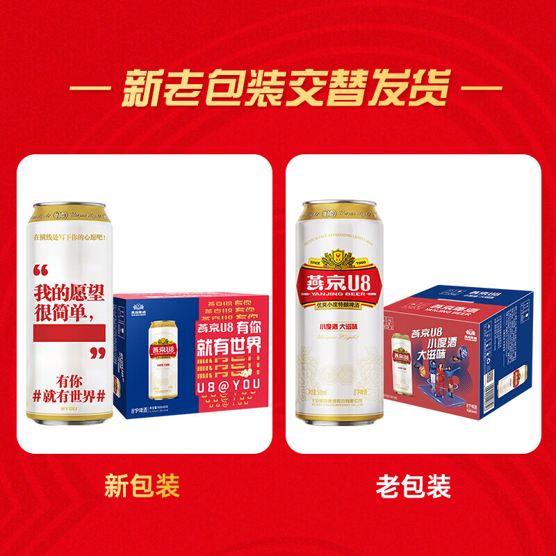 燕京【京东限定】福语罐U8小度啤酒500ml*12听 新老包装混发热卖