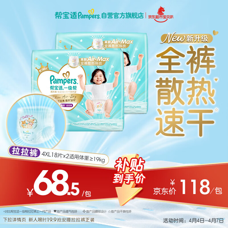帮宝适散热王者一级帮拉拉裤新生儿婴儿尿不湿尿片超薄透气4XL36