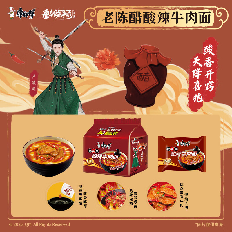 康师傅 方便面 经典老陈醋酸辣牛肉面五连包110g*5 泡面袋装 方便食品