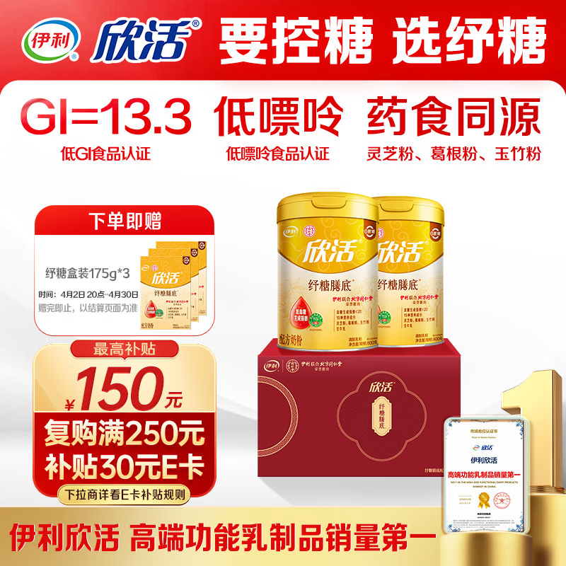 伊利欣活纾糖膳底低GI低嘌呤 中老年奶粉 礼盒 送长辈 营养品 800g*2