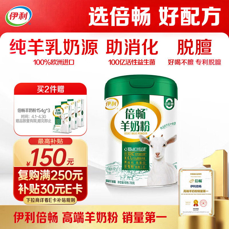 伊利倍畅羊奶粉 成人奶粉 营养 送礼送长辈 无蔗糖 高钙高蛋白 700g