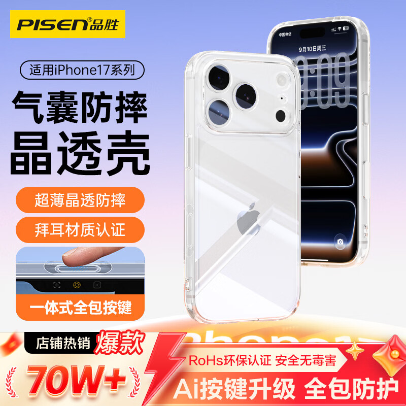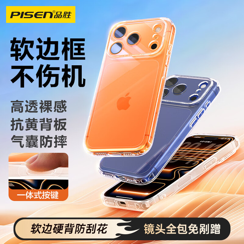 品胜【相机键全包轻薄散热】适用iPhone17ProMax手机壳苹果17ProMax保护套透明气囊防摔软边保护壳