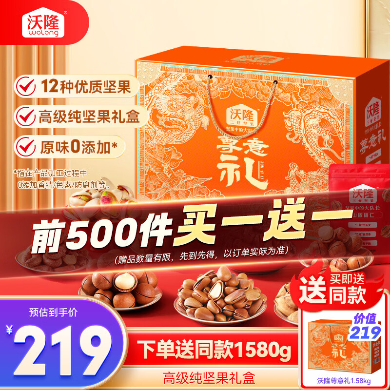 沃隆纯坚果礼盒12袋装1580g高档大分量干果炒货节日礼盒节庆大礼包