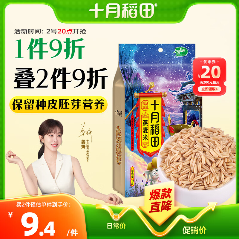 十月稻田 燕麦米 2斤 全谷物米 五谷杂粮粗粮 营养早餐 粥米伴侣 胚芽新米