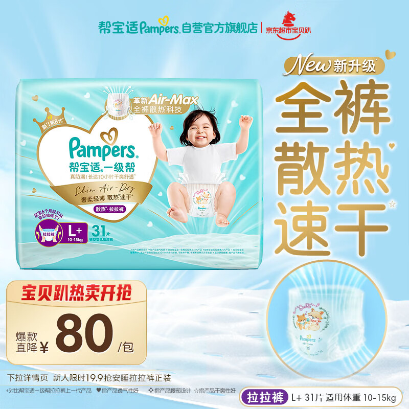 帮宝适散热王者一级帮拉拉裤新生儿婴儿尿不湿尿片超薄透气L+31