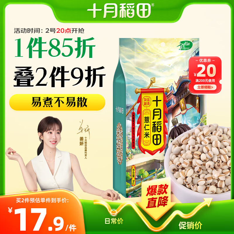 十月稻田 薏仁米 2斤 红豆薏米煮水 五谷杂粮 高蛋白粗粮 粥米 八宝粥原料