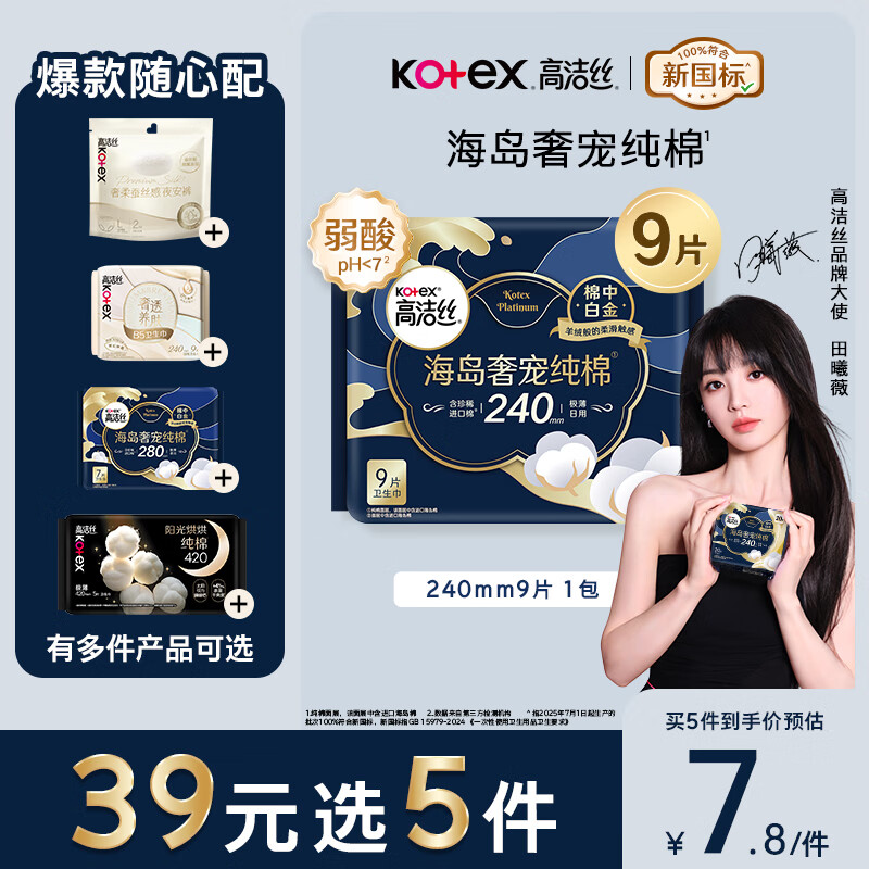 高洁丝【39元任选5件】近0敏海岛棉卫生巾240mm9片日用姨妈巾