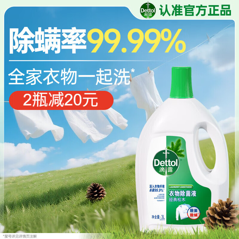 滴露(Dettol)衣物除菌液松木3L 内衣袜子衣物长效杀菌除螨 衣服消毒液儿童可用