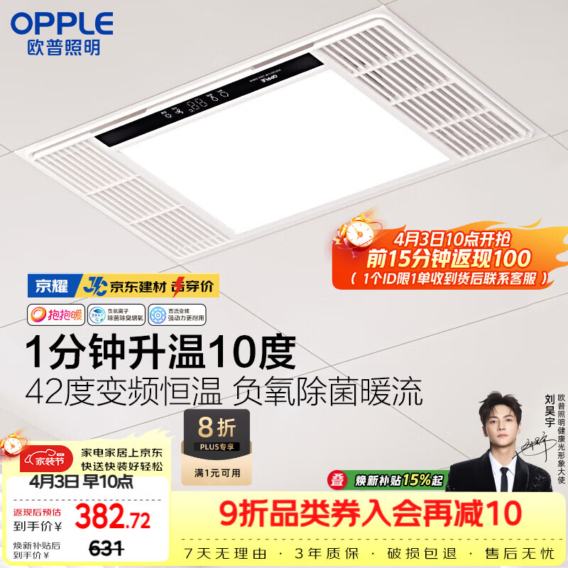 欧普照明(OPPLE)风暖浴霸 京系列 暖风照明排气一体变频恒温除菌浴霸 京耀