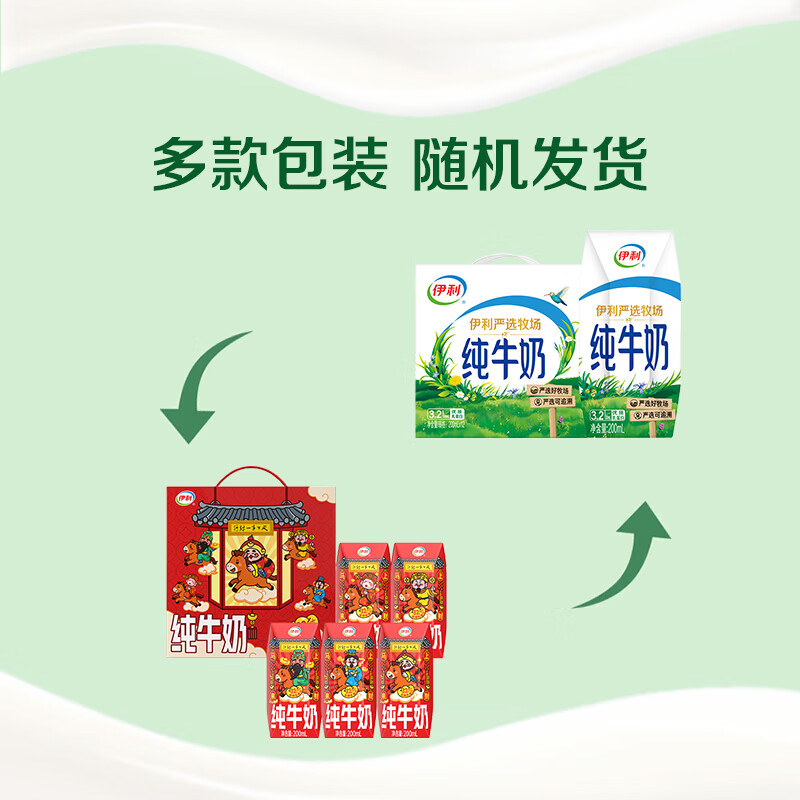 伊利纯牛奶200ml*12盒 利乐钻包 财神装普通礼盒装混发
