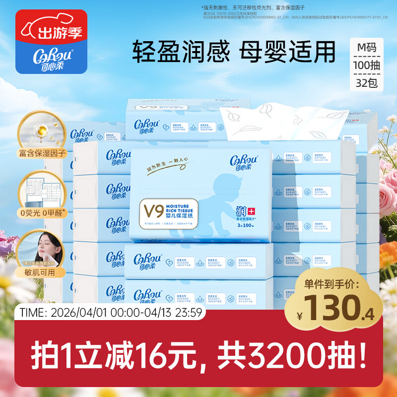 可心柔(COROU)抽纸 3层100抽*32包M码婴儿柔纸巾 云柔巾 保湿纸 乳霜纸 囤货装