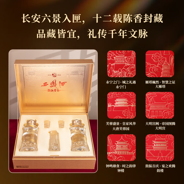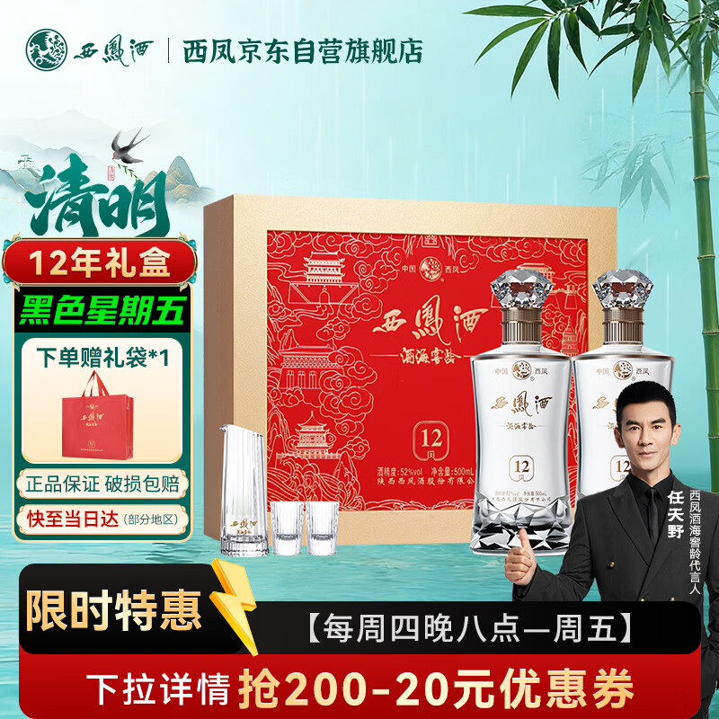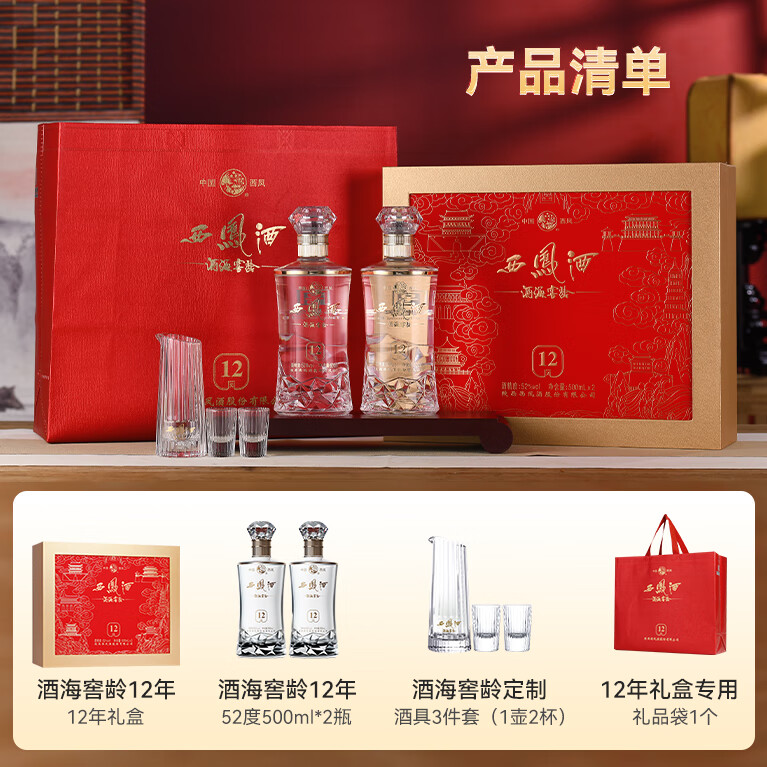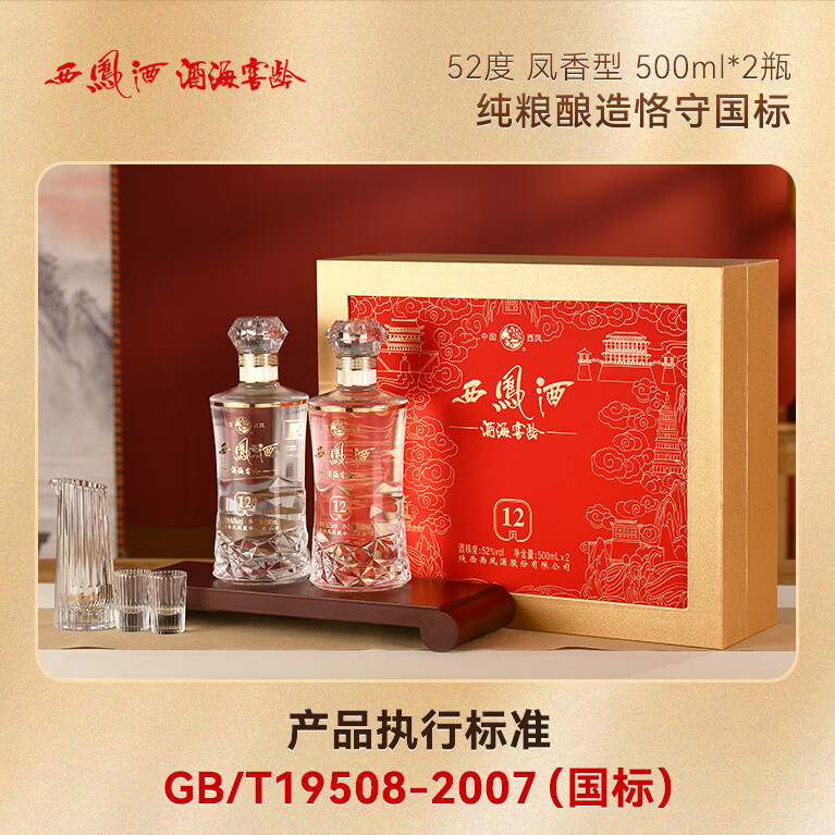 西凤酒 12年52度 500ml*2瓶 礼盒装 凤香型白酒 婚庆喜宴送礼