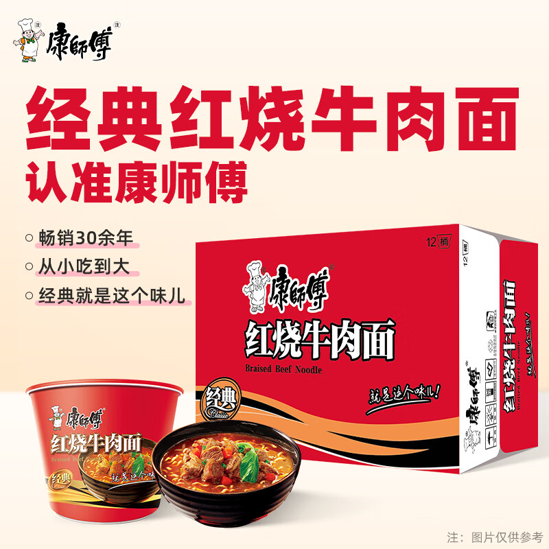 康师傅 方便面 经典红烧牛肉桶面110g*12 泡面整箱速食 方便食品
