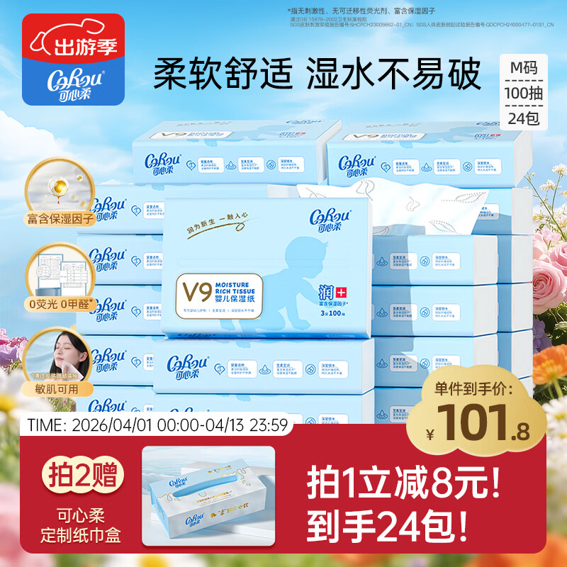 可心柔(COROU)抽纸 3层100抽*24包M码 婴儿柔纸巾保湿纸巾 云柔巾 乳霜纸 整箱