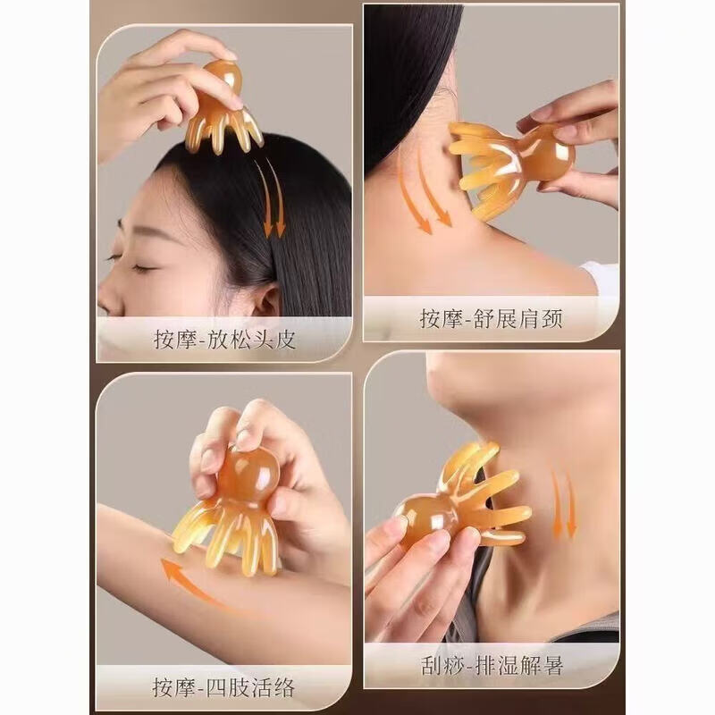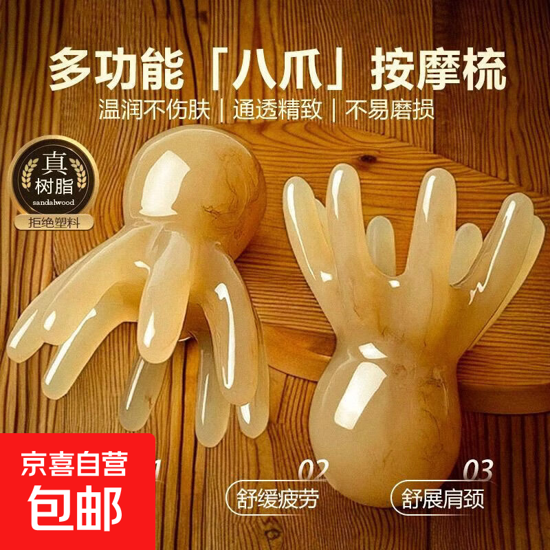 眼部按摩梳子助眠失眠头疗颈椎腰背穴位按摩器脚底小腿肩颈刮痧理疗护理熬夜养生三八节送爸妈老婆 章鱼头部按摩梳两只装