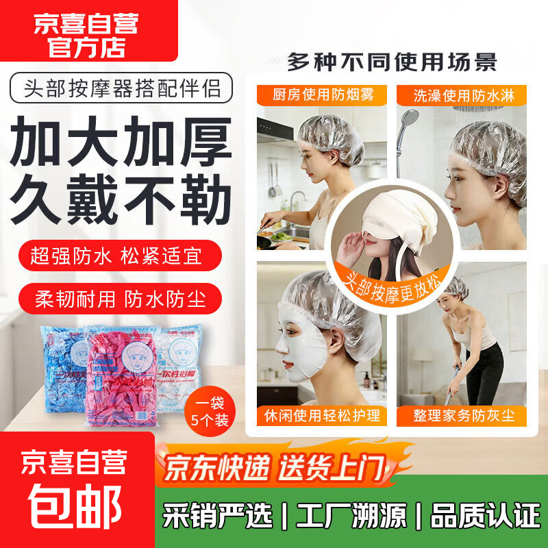 【按摩器伴侣】浴帽加大加厚久戴不勒耐用防水防尘帽防油烟厨房洗浴家务场景可重复用妈妈老婆礼物 【5个装】防水防油防灰尘按摩浴帽