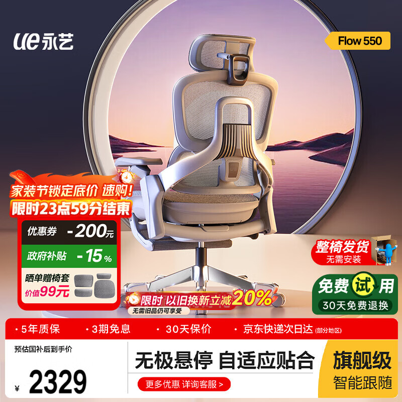 永艺Flow550人体工学椅电脑椅子护腰人工力学座椅久坐办公学习电竞椅