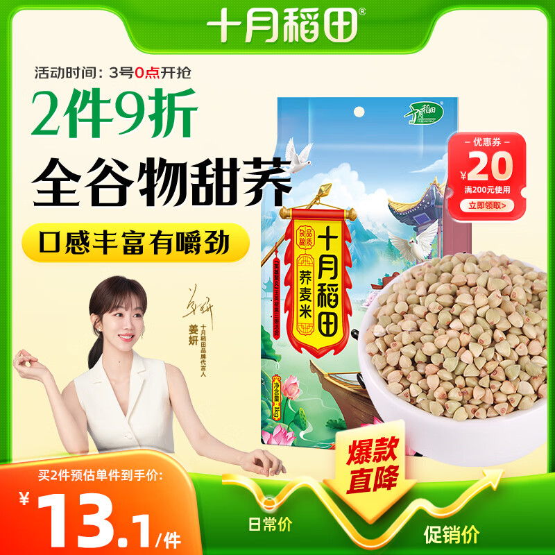 十月稻田 荞麦米 2斤 东北甜荞 五谷杂粮米 低脂粗粮 粥米伴侣新米 纯荞麦