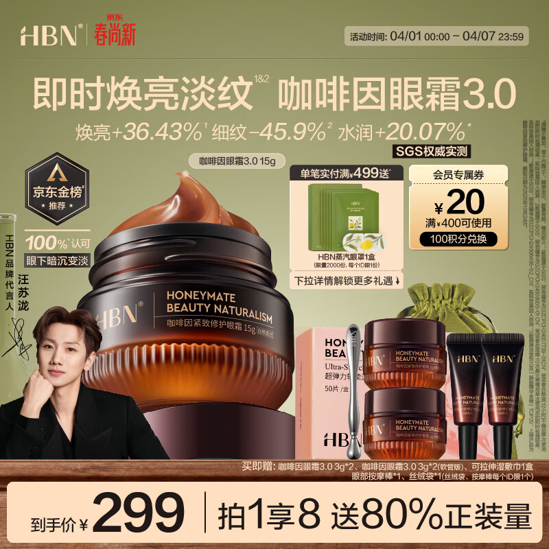 HBN咖啡因眼霜淡化细纹提拉紧致淡化黑眼圈眼袋鱼尾纹护肤品生日礼物
