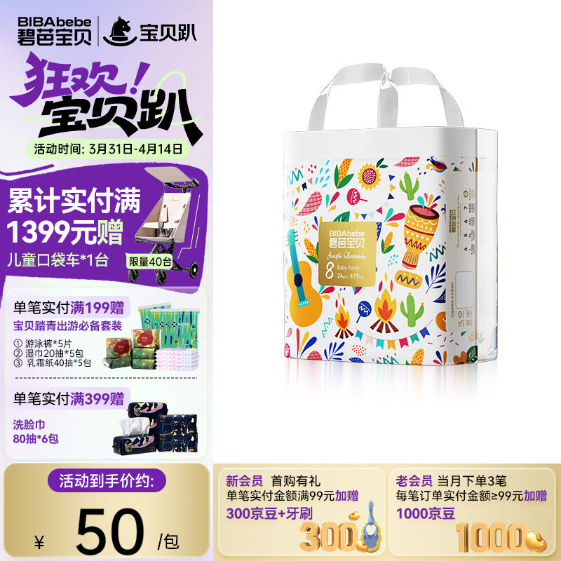 碧芭宝贝丛林狂想曲拉拉裤 婴儿成长裤宝贝训练裤透气大号尿不湿 拉拉裤XXXXL24片(19kg以上)