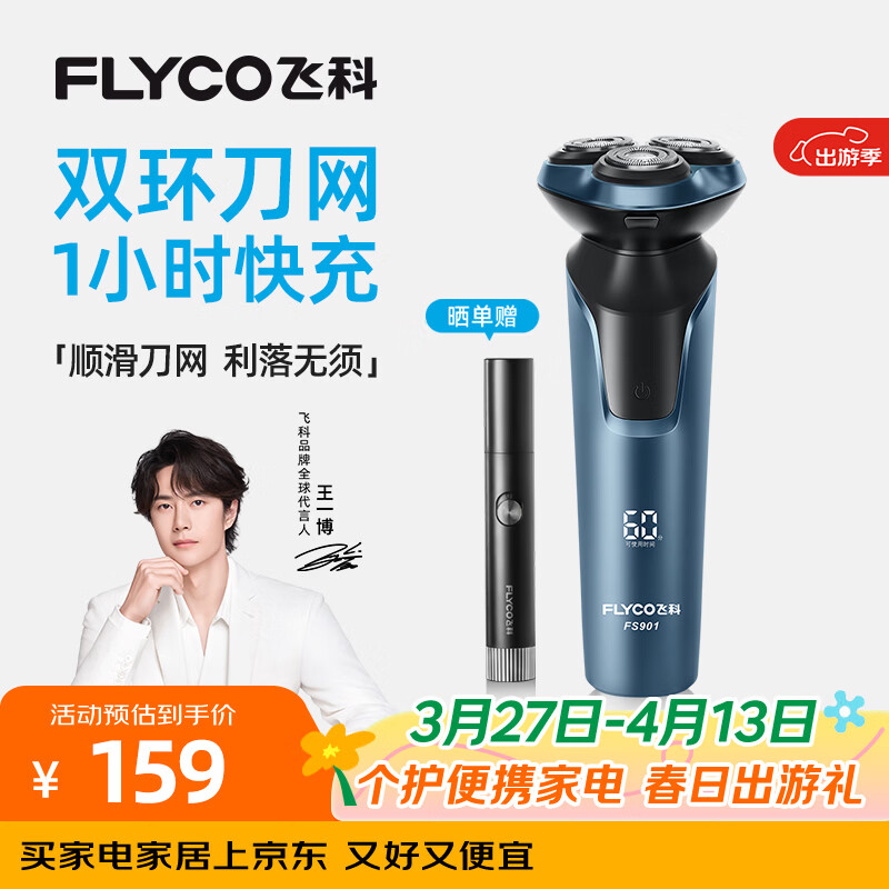 飞科(FLYCO)剃须刀电动刮胡刀全身水洗智能充电式胡须刀生日礼物送男朋友父亲礼品 FS901标配【带鬓角刀】