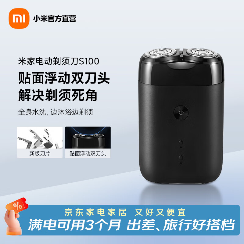 米家小米电动剃须刀S100 小巧便携刮胡刀 Type-c充电 全身水洗 低噪音 可上飞机情侣礼物推荐 便携电动剃须刀S100