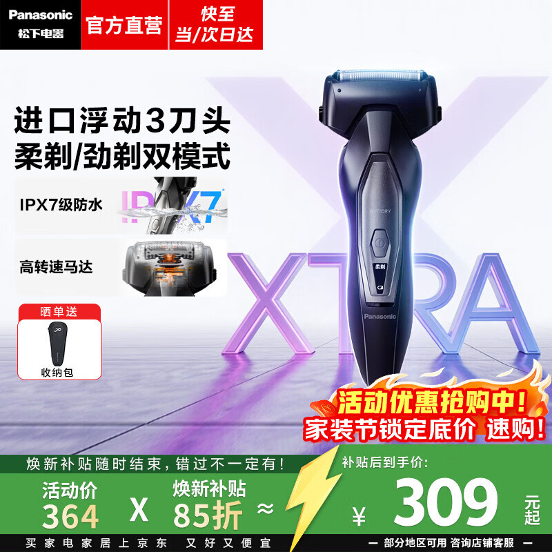 松下(Panasonic)【焕新补贴】Xtra赛博电动剃须刀往复式刮胡刀男士便携全身水洗送男朋友老公生日礼物ERT4 新品Xtra【净剃双模式+进口三刀头】