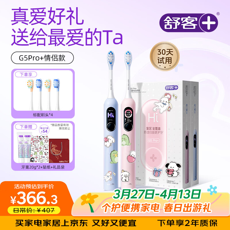 舒客AI智能化大屏扫振电动牙刷成人学生送男友女友情侣新年生日礼物G5 Pro+