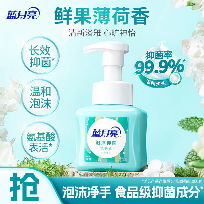 蓝月亮泡沫洗手液氨基酸抑菌 泡沫细腻滋润保湿(鲜果薄荷)255ml 泡泡