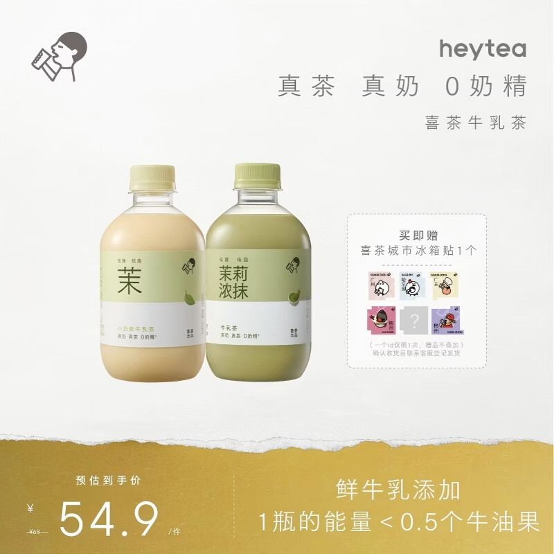 喜茶牛乳茶2口味混合装350ml*8瓶 鲜牛乳添加 低糖低脂奶茶饮料整箱