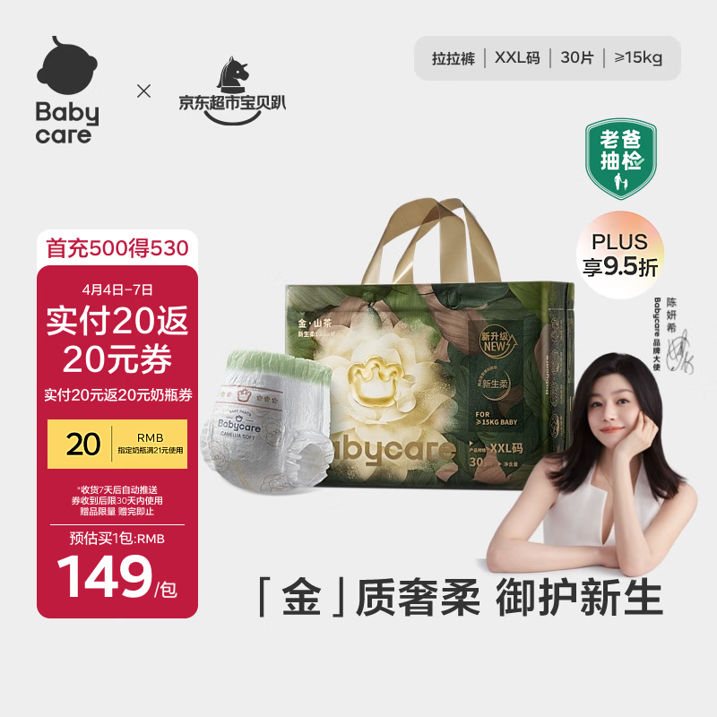babycare金山茶花拉拉裤XXL30片(>15kg)婴儿尿不湿超薄透气新生柔花苞裤