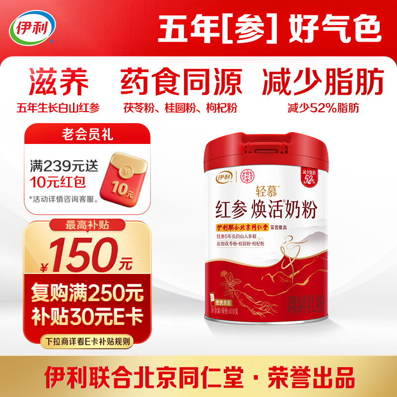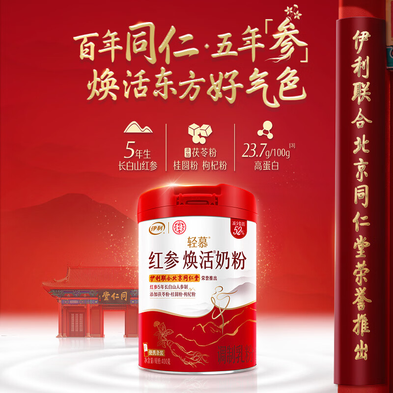 伊利轻慕红参焕活 女士奶粉 高钙高蛋白 营养品 5年生长白山红参 400g