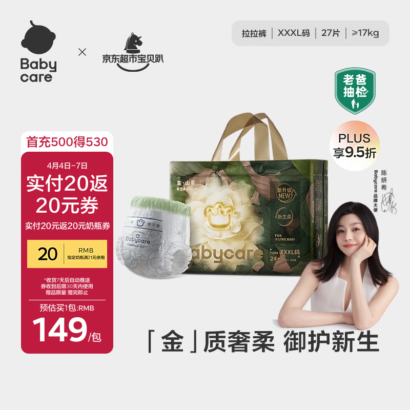 babycare金山茶花拉拉裤XXXL24+3片(>17kg)婴儿尿不湿超薄透气轻柔花苞裤