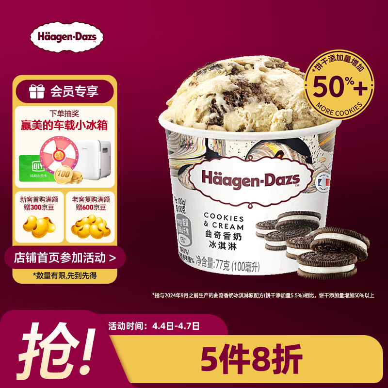 哈根达斯(Haagen-Dazs)经典曲奇香奶口味冰淇淋 100ml/杯 雪糕