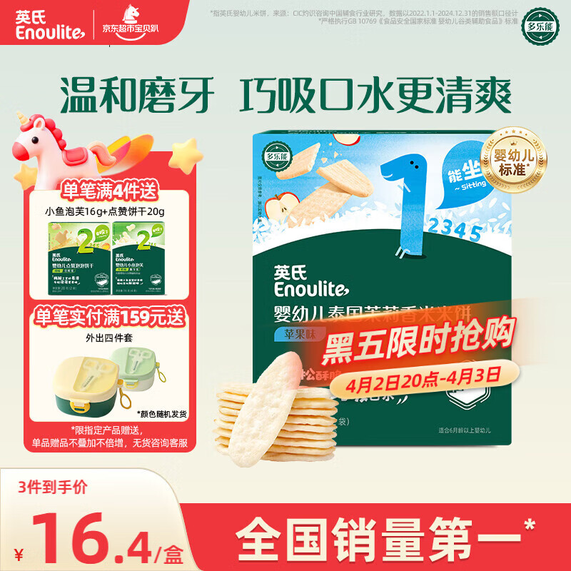 英氏(Engnice)婴幼儿米饼苹果味婴儿零食磨牙饼干宝宝零食48g哄娃解馋6个月以上