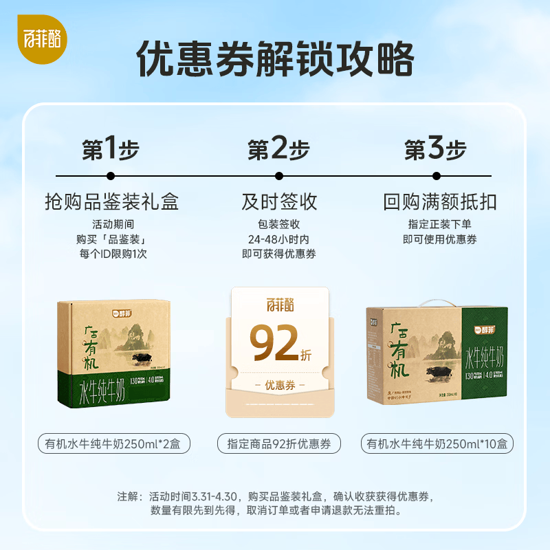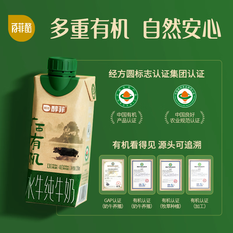 百菲酪醇菲水牛纯牛奶梦幻盖有机水牛奶4.0g乳蛋白250ml*2盒 早餐奶