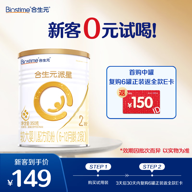 合生元(BIOSTIME)派星较大婴儿配方奶粉 2段(6-12个月)350g*1罐乳桥蛋白LPN