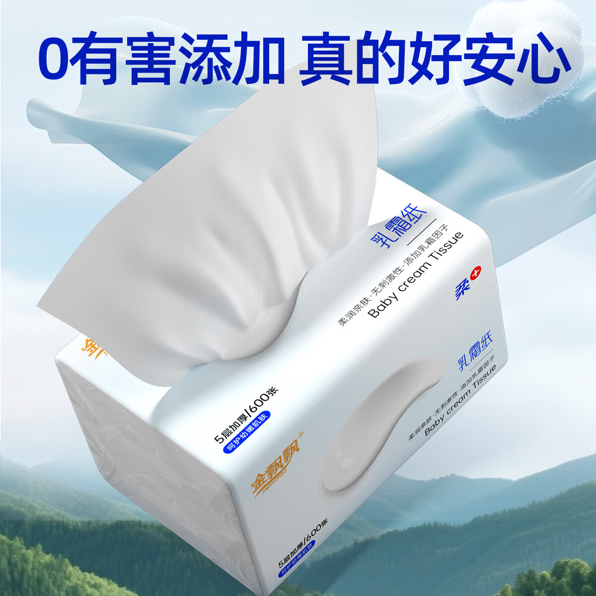 【5层柔厚】金飘飘乳霜纸 600张5层植物精华保湿抽纸必备云柔巾 金飘飘 5层 120抽*1包