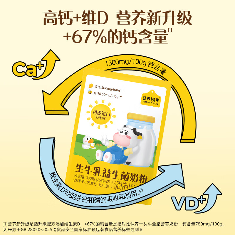 认养一头牛儿童生牛乳益生菌奶粉(3-14岁)优量高钙 消化吸收300g*1袋