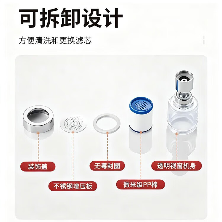 MEIGOOOD家用水龙头过滤器万能通用防溅花洒宿舍厨房净水器 短款花洒过滤器+一支滤芯
