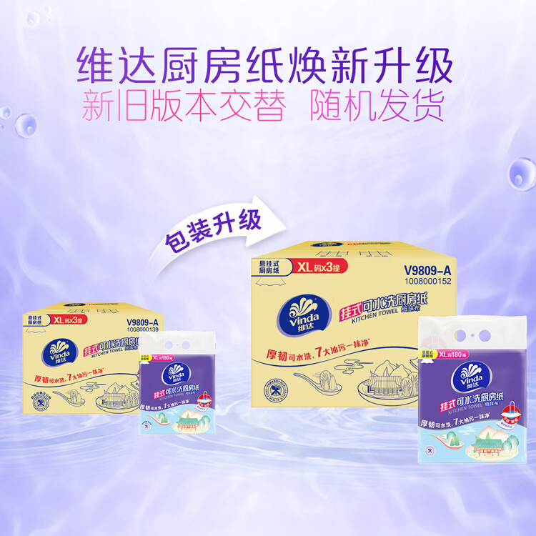 维达(Vinda)厨房用纸 180抽3提 挂抽厨房纸 悬挂式厨房纸巾整箱