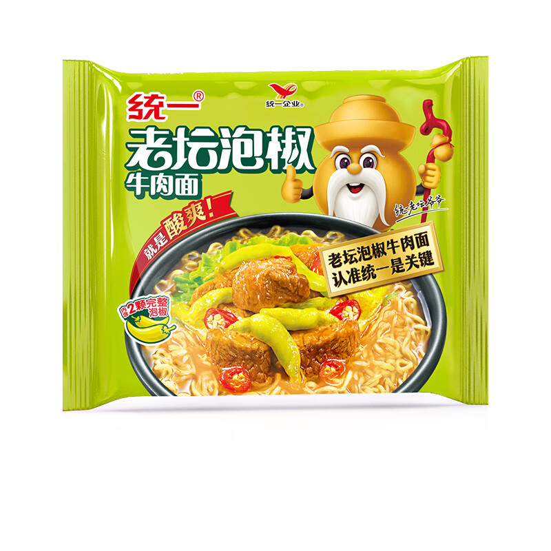 统一老坛泡椒牛肉面 袋装 104g*5袋 五连包 传统老坛地道泡制速食泡面