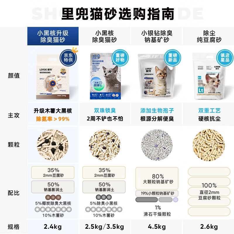 lorde里兜猫砂木薯混合豆腐钠基膨润土除臭黑核升级款2.4kg【尝鲜装】