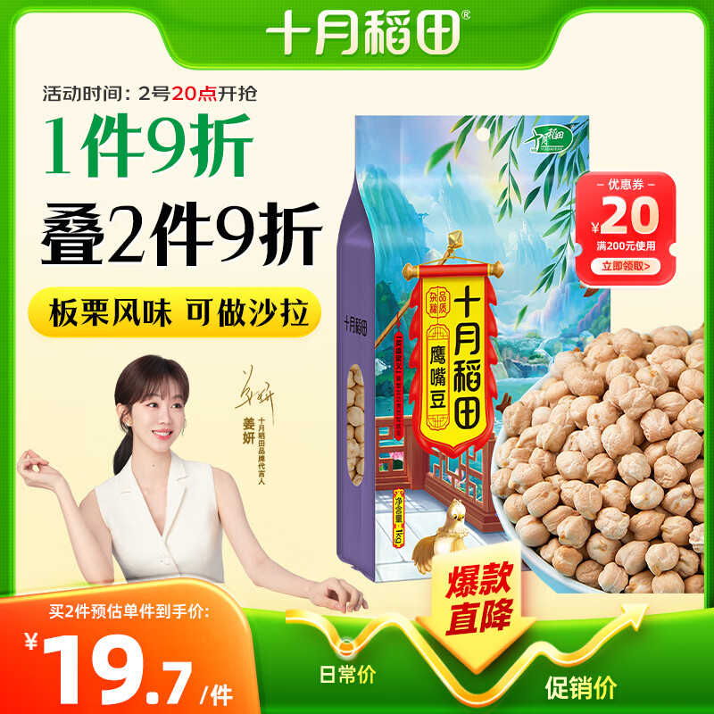 十月稻田 鹰嘴豆 2斤 高蛋白质 五谷杂粮豆 健身粗粮代餐 搭配藜麦沙拉