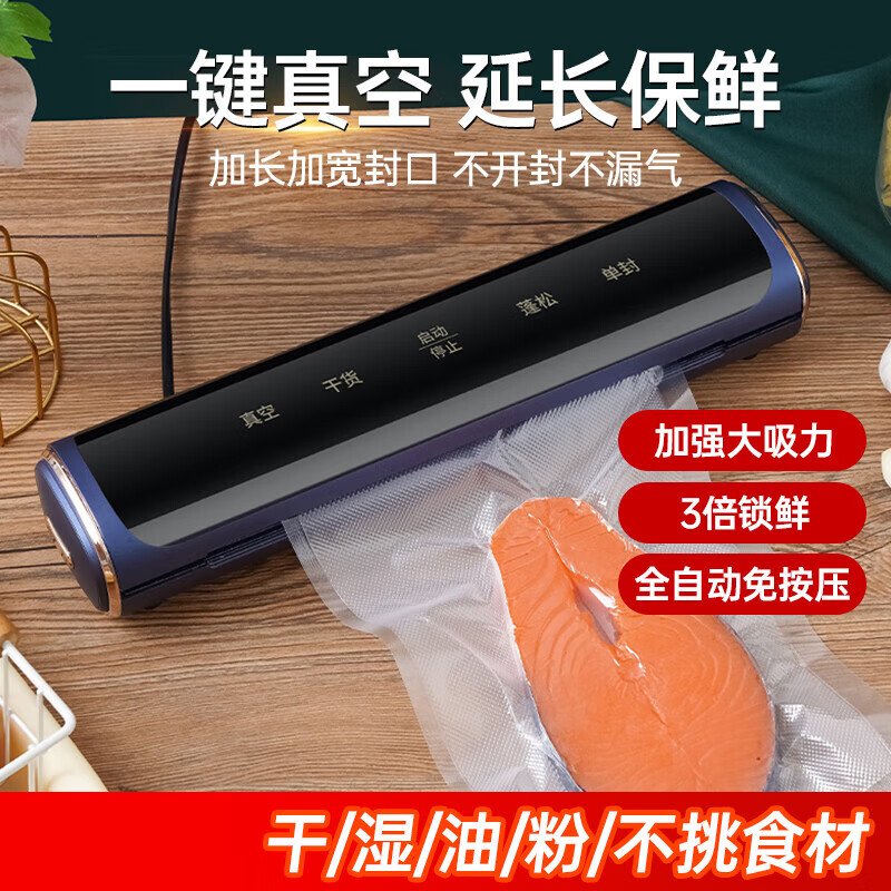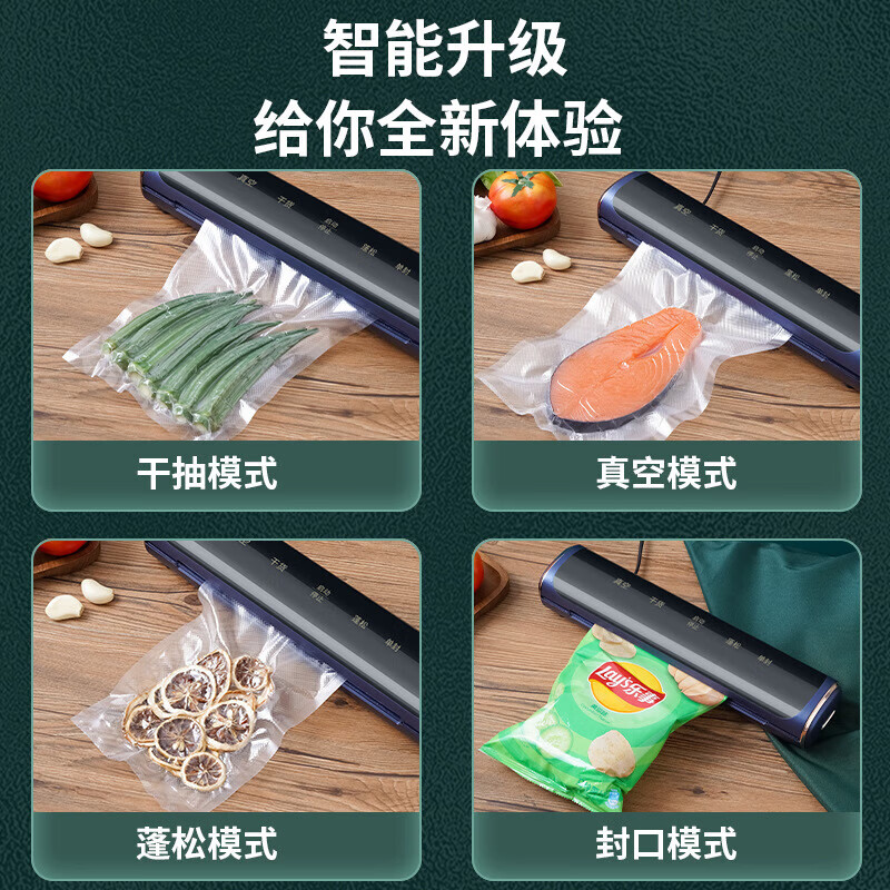全自动真空封口机家用食品包装密封机 干湿抽真空塑封压缩保鲜腊肉腊肠食品打包机 专用密封袋10个(17*25)