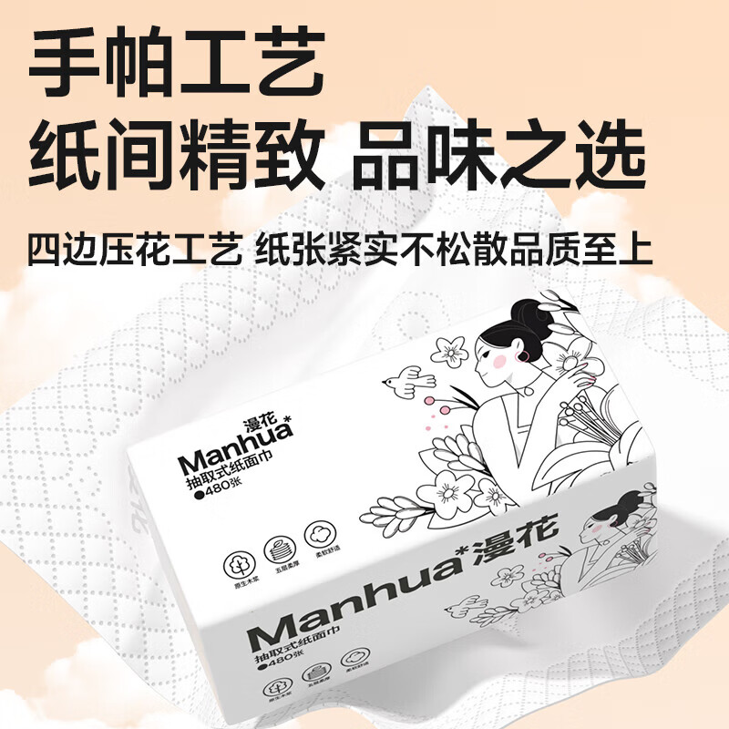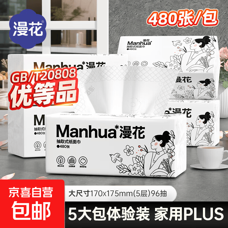 480张5层大包纸巾抽纸整箱实惠装擦手卫生纸餐巾纸加厚加大 漫花大包抽纸 5层 480张*5包