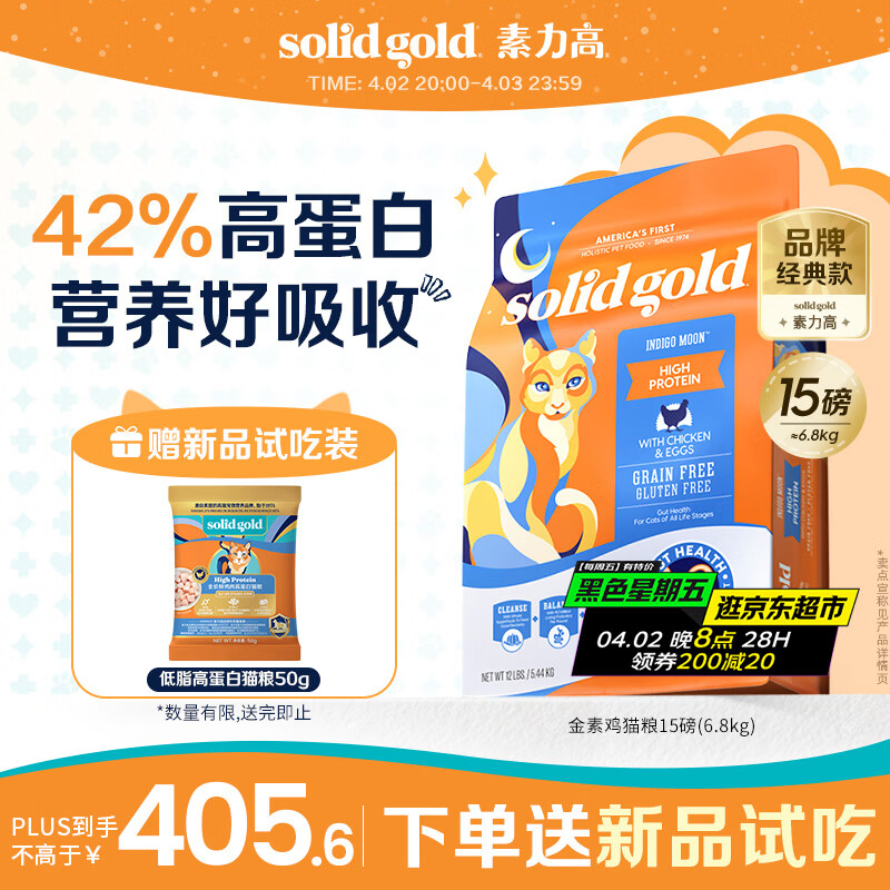 素力高(SolidGold)进口高蛋白金装金素鸡长肉营养成猫全价猫粮15磅/6.8kg
